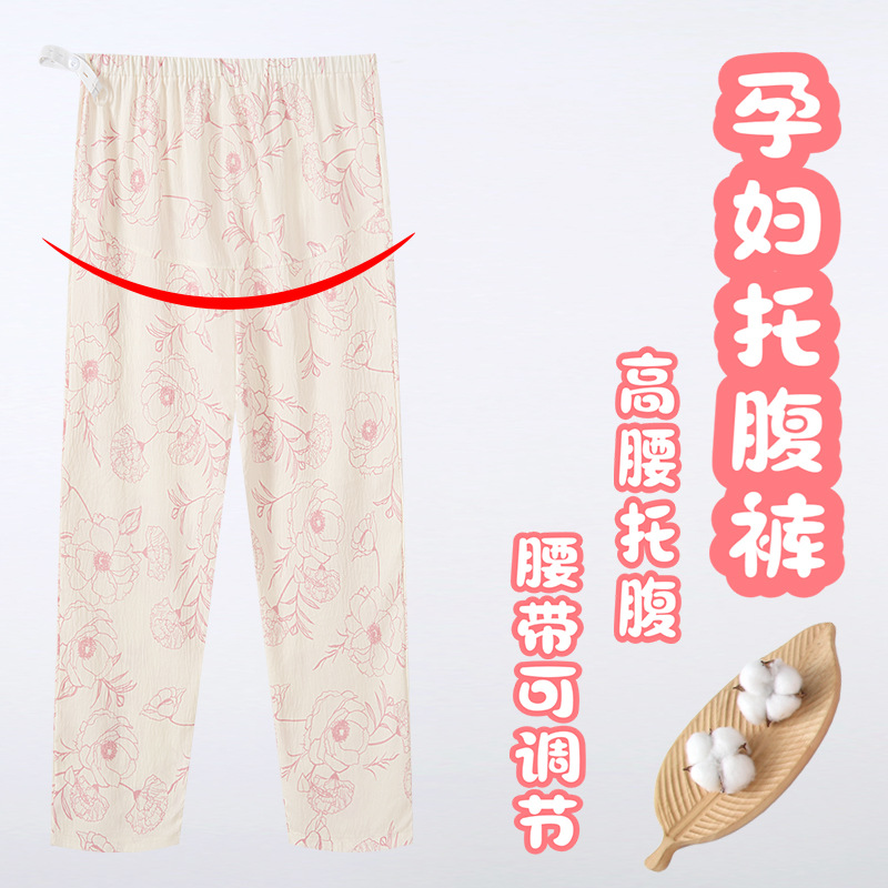 2025雲の綿の妊婦のズボンの産婦の月子は肥満の200斤の高腰の薄いタイプのパジャマをプラスして、外は腹のズボンの8を着ることができます。
