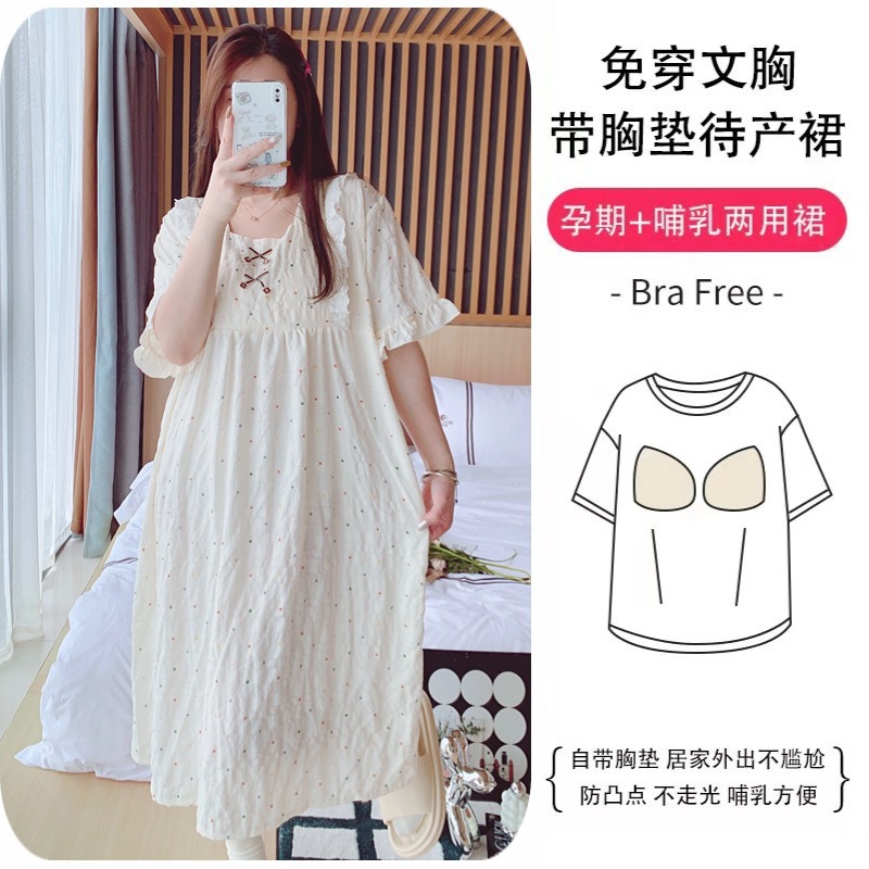 2025雲綿半袖月子服胸パッド付き出産予定スカートはブラジャー哺乳スカートを着用しない5月6夏は薄い