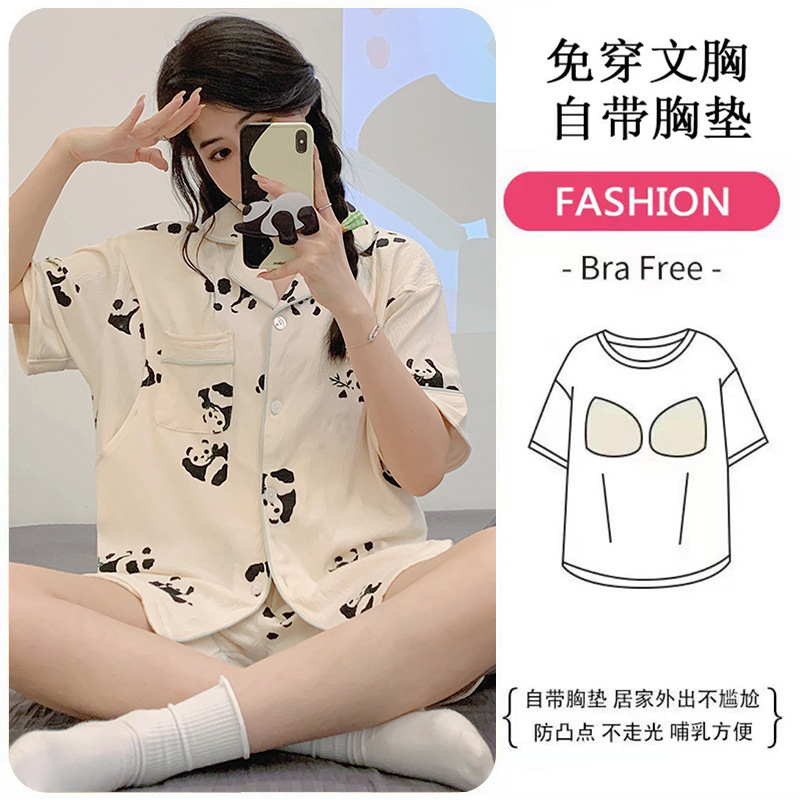 2025月子服胸パッド付き夏雲綿薄手妊婦パジャマ授乳服産後授乳服ホームウェア