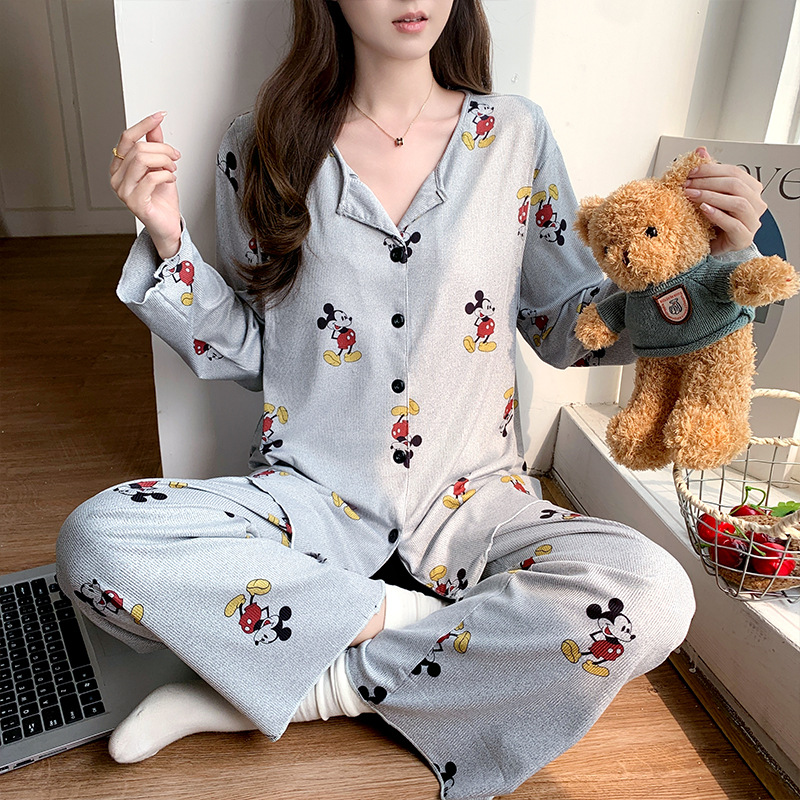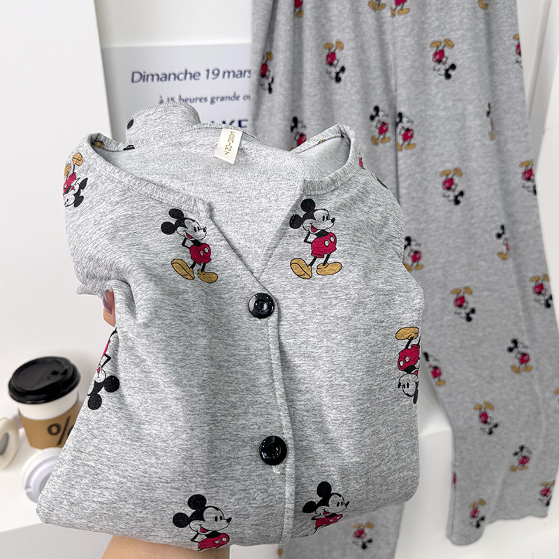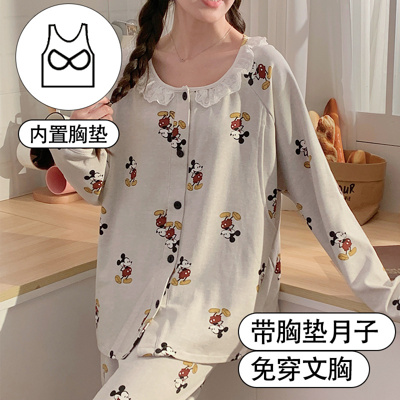 2025胸パッド付きミッキー月子服春夏綿妊婦パジャマ