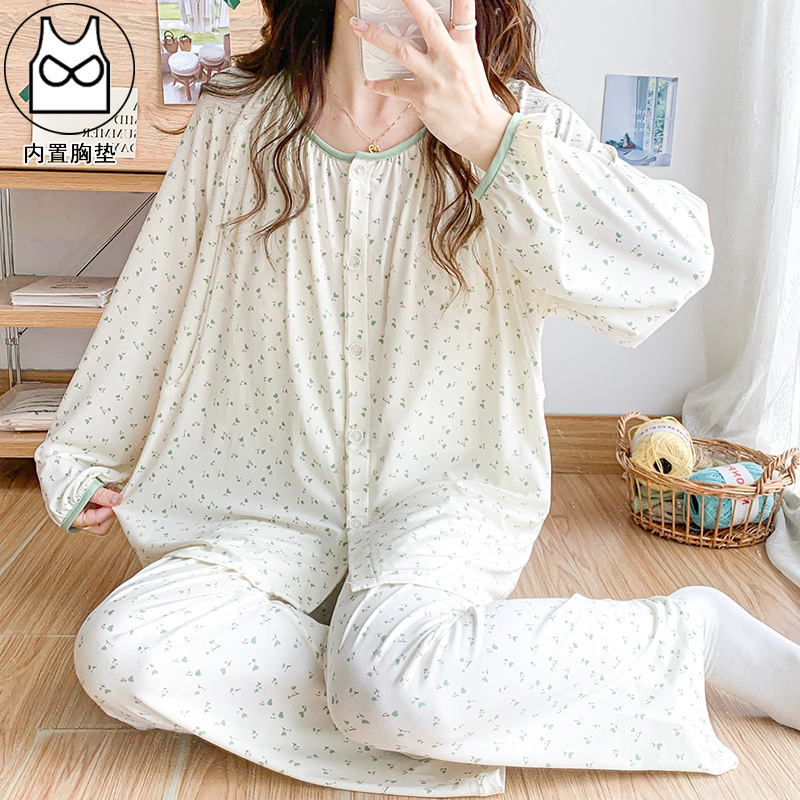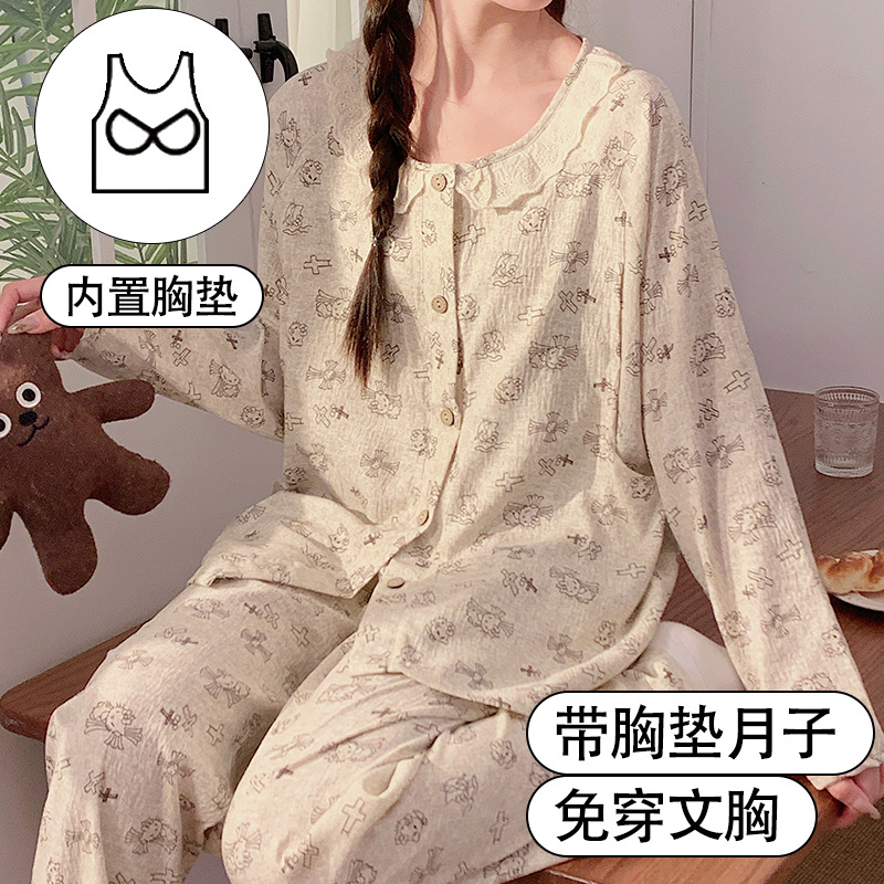 2025胸パッド付き月子服雲綿産後授乳家庭服妊娠中の産婦の通気性出産待ちのパジャマ