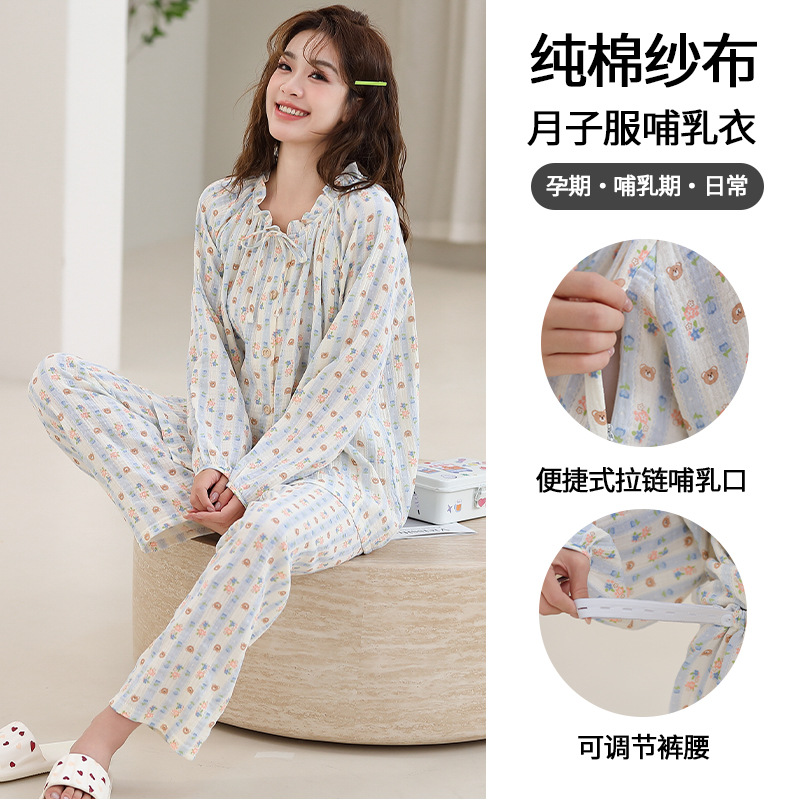 2025純綿ガーゼ月子服春夏薄手産後授乳中妊婦パジャマ女性産婦授乳ホームウェア