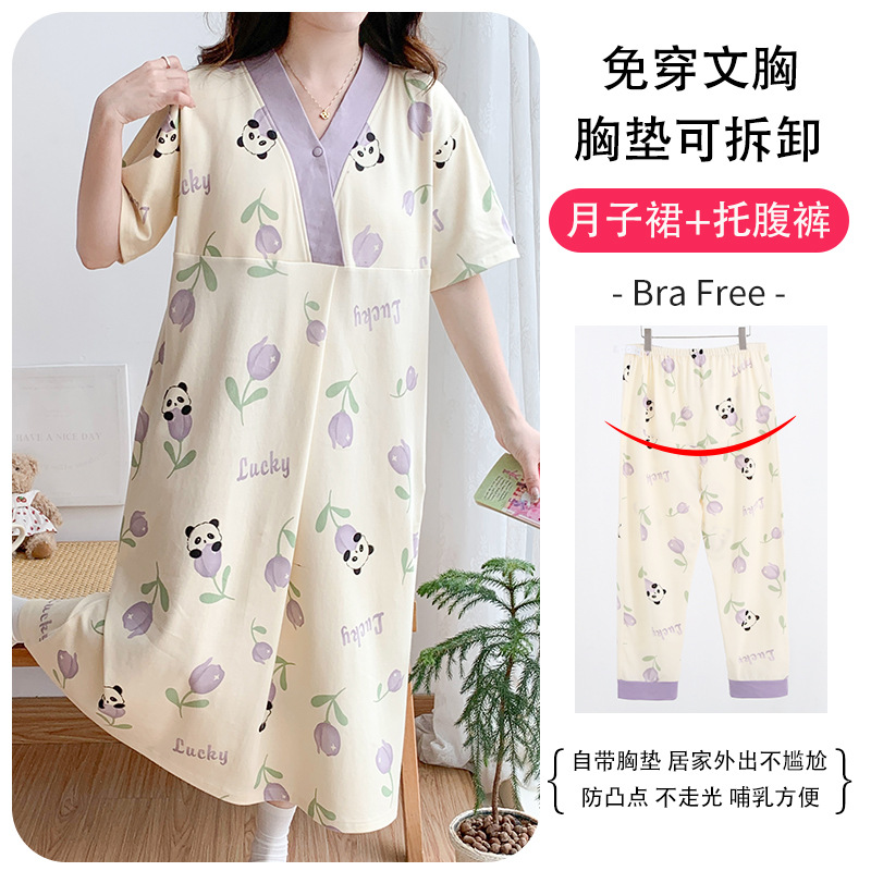 2025妊婦服春夏防綿胸パッド付き月子服産後妊婦産後授乳服は家庭服を着ることができる