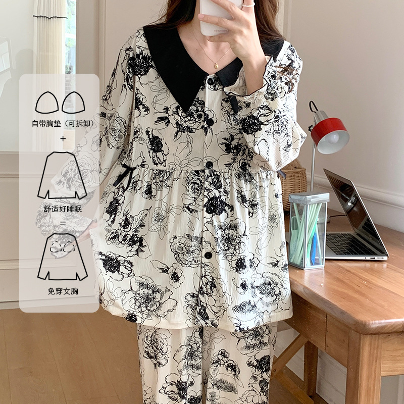 2025胸パッド付き春夏の薄い月子服妊婦のパジャマ