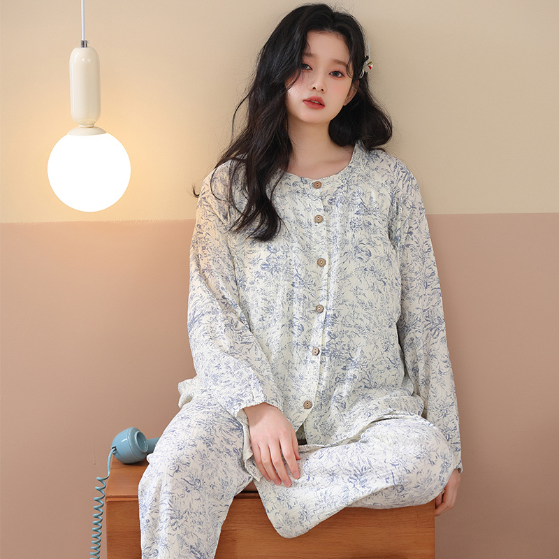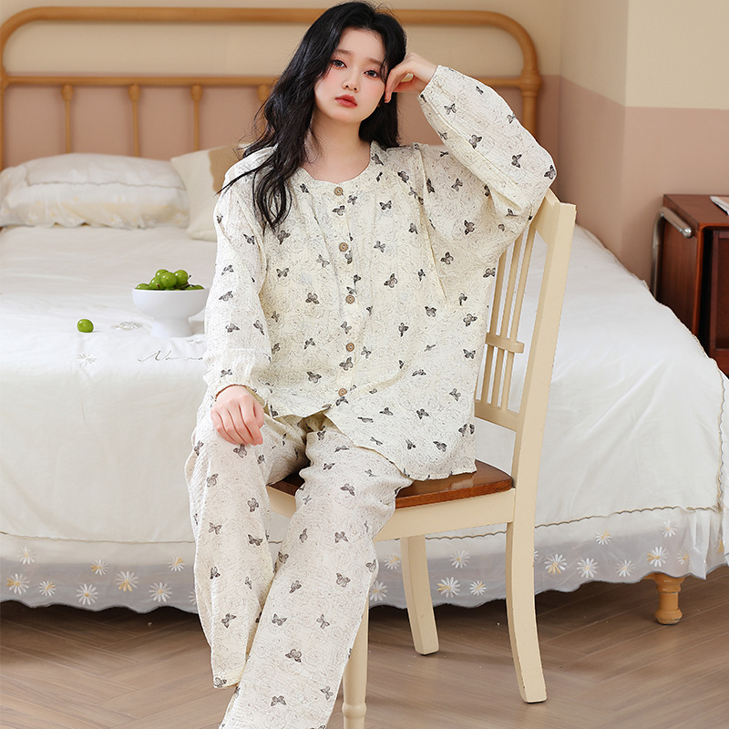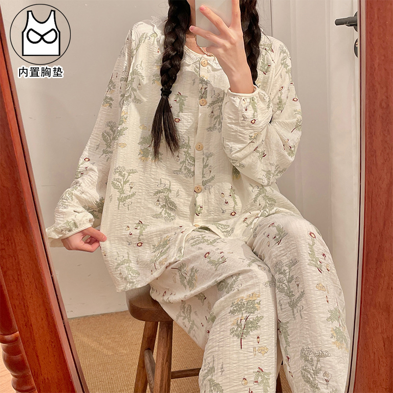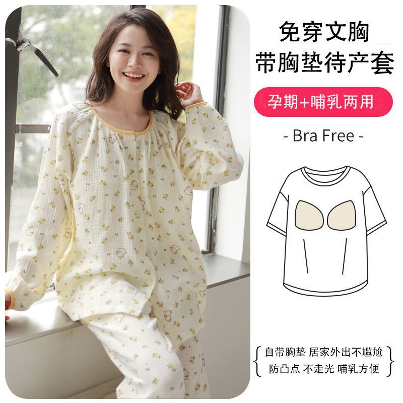 2025春夏の薄いタイプの胸パッド付き綿ガーゼ月子服妊婦パジャマ授乳授乳服妊娠中の家庭服