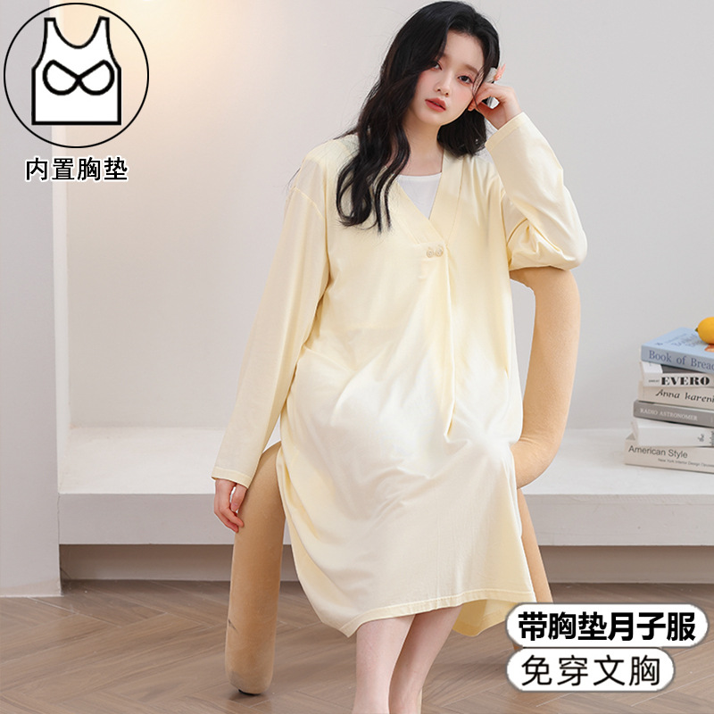 2025妊婦パジャマ胸パッド付き雲綿月子服出産予定服入院服授乳服出産後授乳服女性