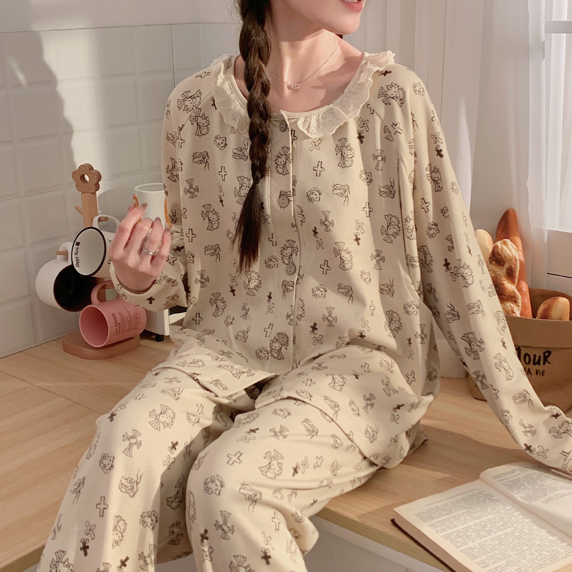 2025月子服春秋5月純綿産後妊婦パジャマ薄手産婦授乳パジャマ授乳ホームウェア6