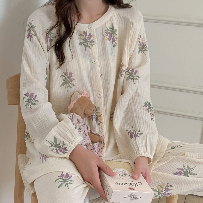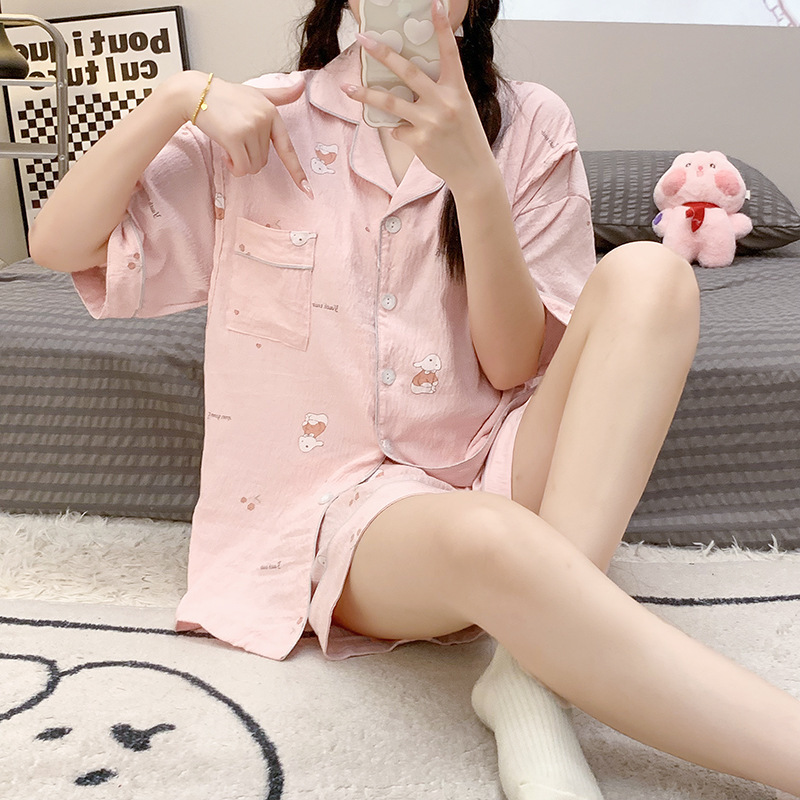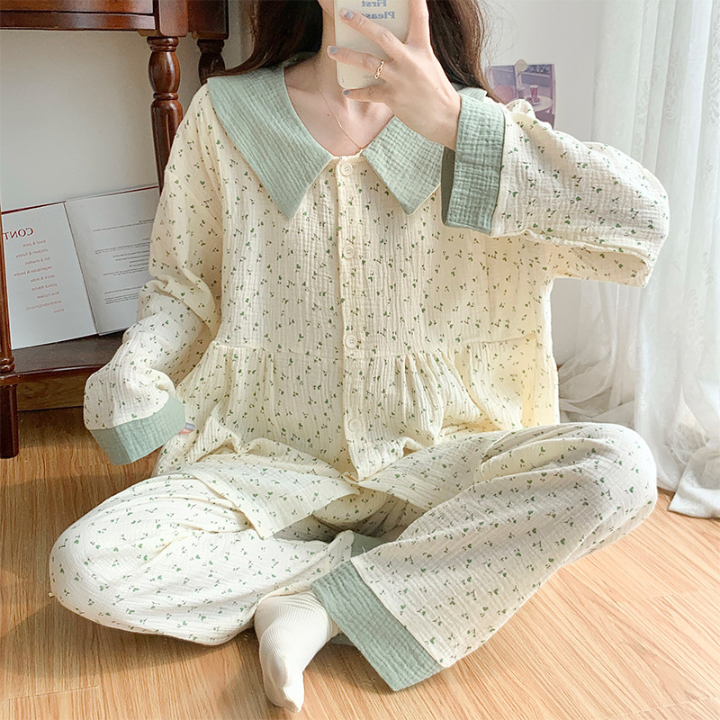 2024夏二重泡鄒紗妊婦パジャマ女月子服ガーゼ純綿薄手授乳ホーム服