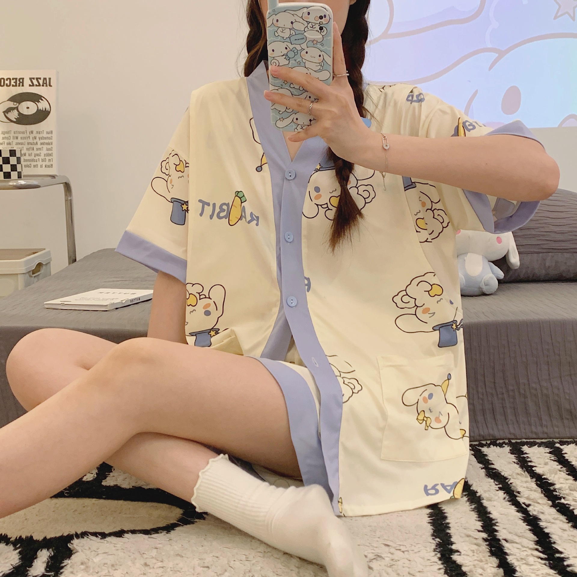 2024夏の薄いタイプの胸パッド付き哺乳パジャマ半袖2点セット妊婦パジャマ雲輪綿月子服セット