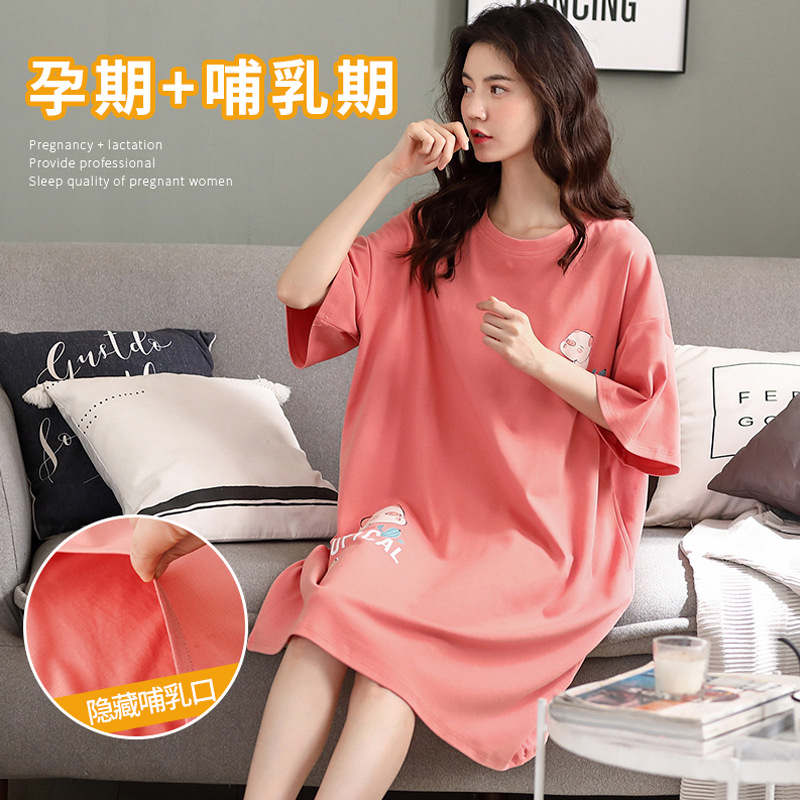 2024授乳パジャマ夏7半袖ゆるい薄手長袖妊婦出産予定スカート純綿月子服寝る服8