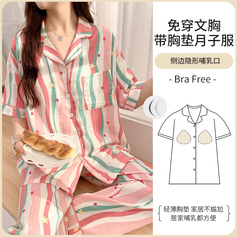 2024夏の薄い雲綿月子服パジャマ胸パッド付き半袖ズボン産後授乳ホームウェア