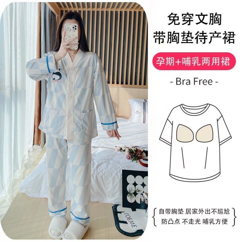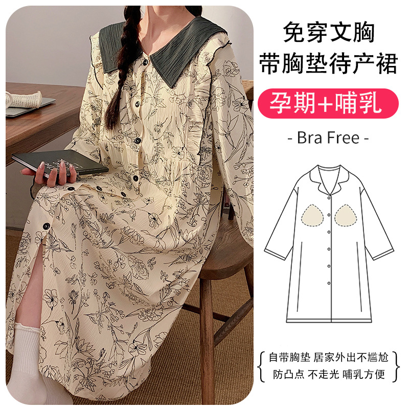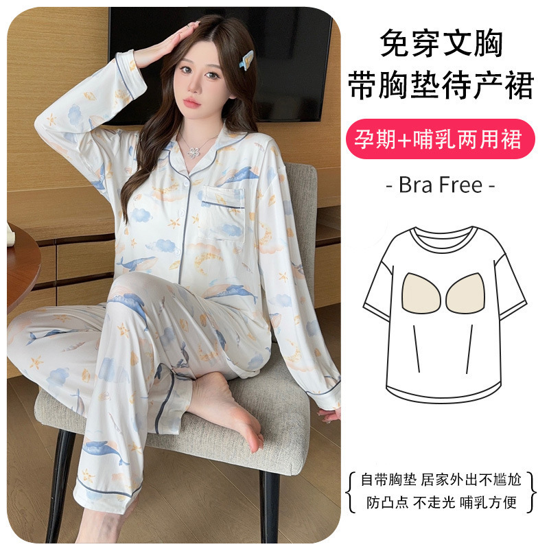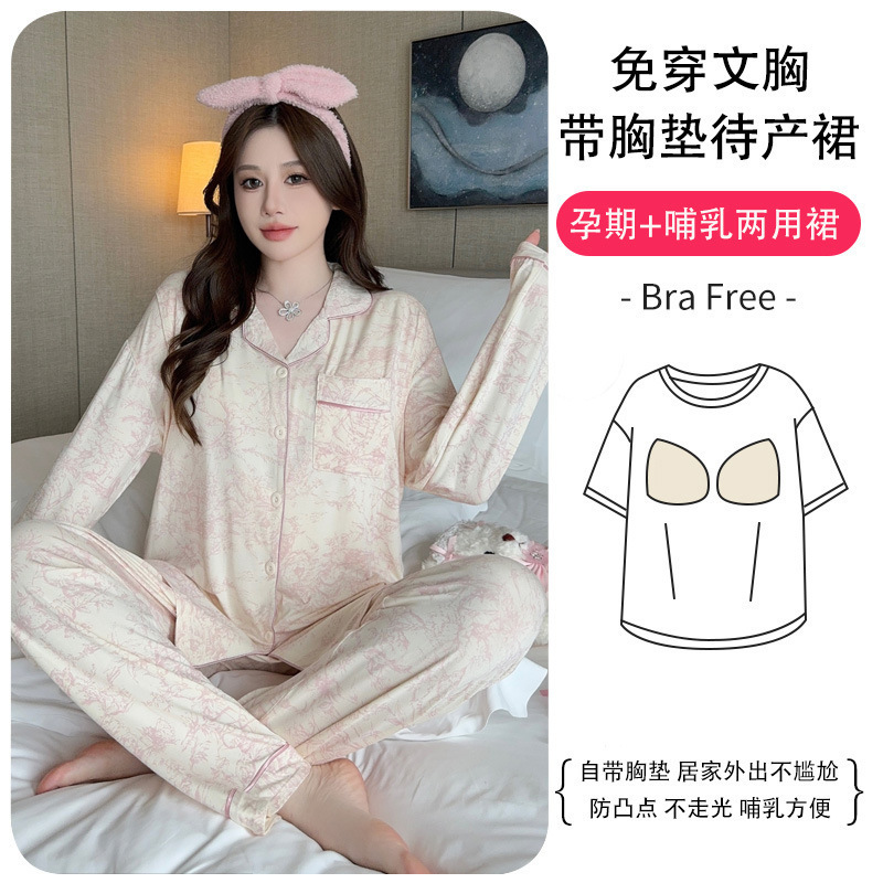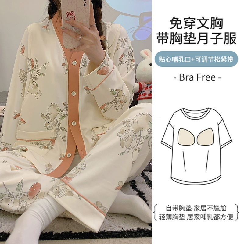 2024妊婦パジャマ月子服胸パッド付きモーデール春秋カーディガン授乳授乳出産後妊娠ホームウェア