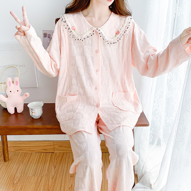 2024坑条牛乳糸出産前産後授乳月子服妊婦パジャマカーディガン夏産後セット