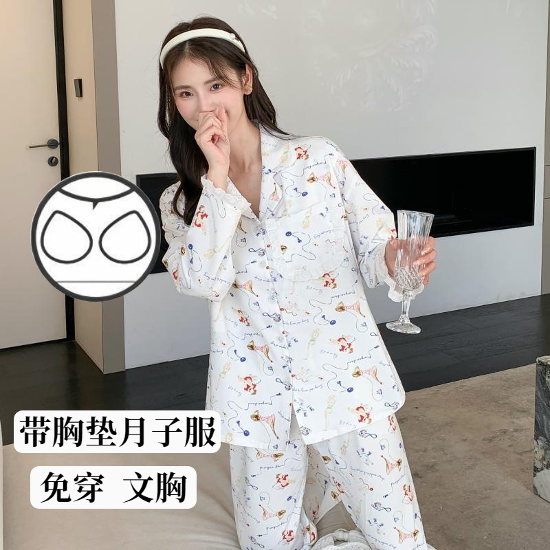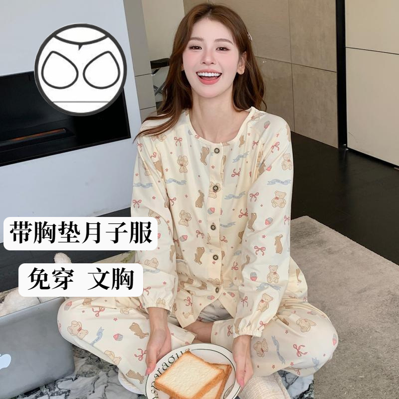 2023胸パッド付き月子服純綿妊婦パジャマ春秋産後妊娠中産婦授乳セット12