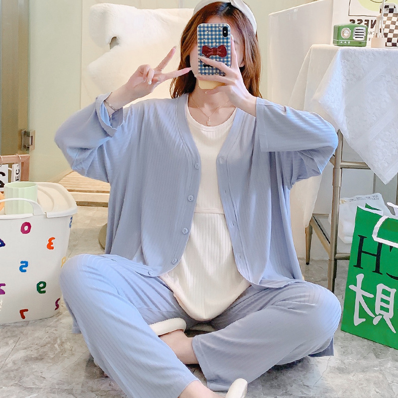 妊婦パジャマ2024春の3つの肥料を加えて月子服を増やします。胸パッド付き哺乳パジャマ産婦の授乳家庭服4