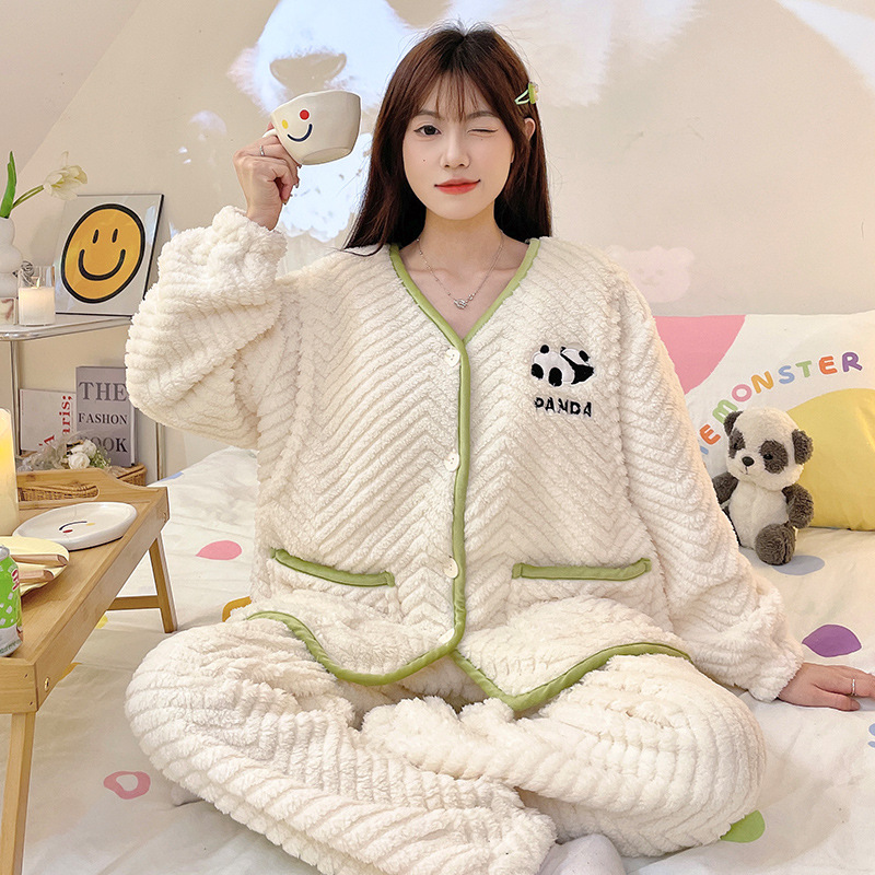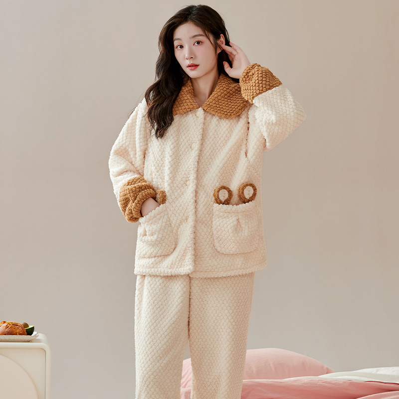 2024月子服妊婦パジャマ女性冬12月ジャカードパイル厚手パイル保温ホームウェアセット11