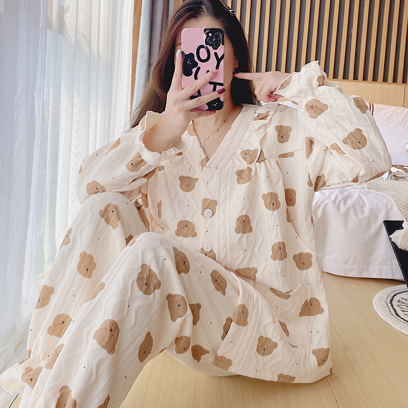 2024月子服空気綿産後妊婦パジャマ秋冬11サンドイッチ産婦哺乳家庭服女性10月
