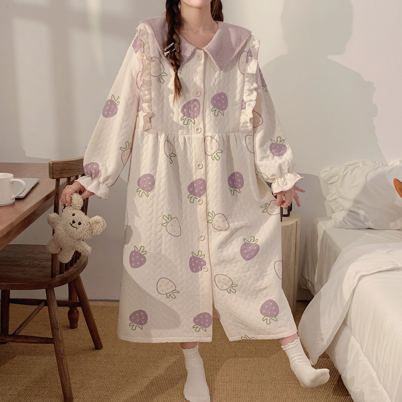 2024月子服秋冬産房授乳スカート積層厚産後空気綿妊婦パジャマワンピース