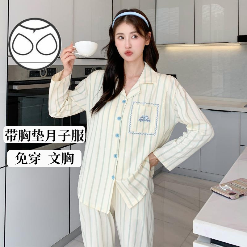 2023胸パッド付き月子服純綿妊婦パジャマ春秋産後妊娠期大サイズ授乳セット12