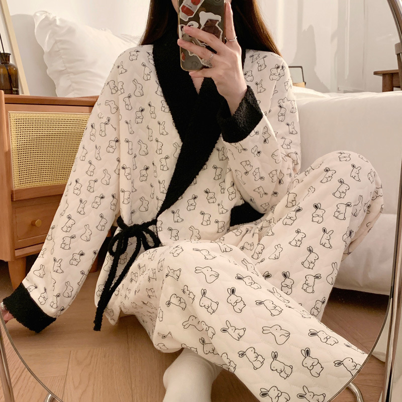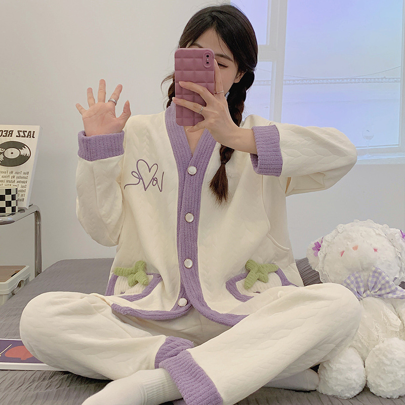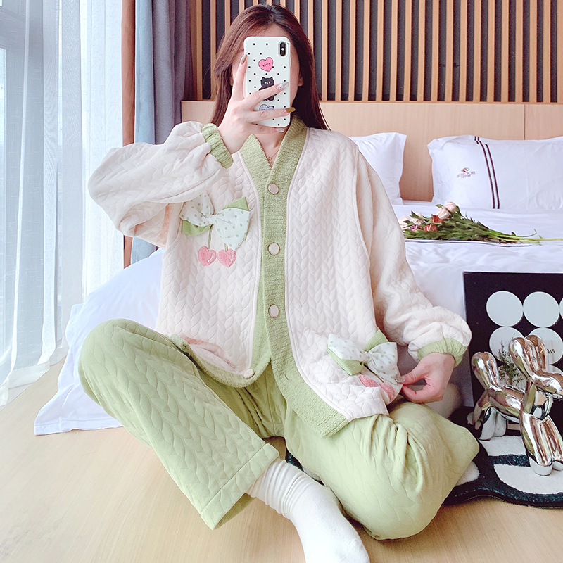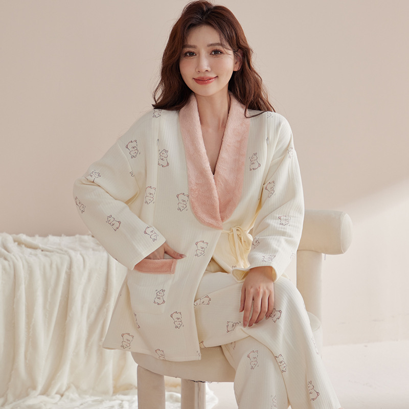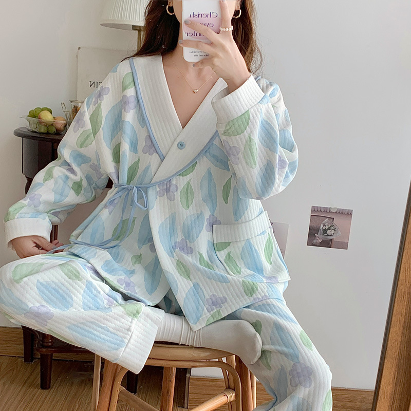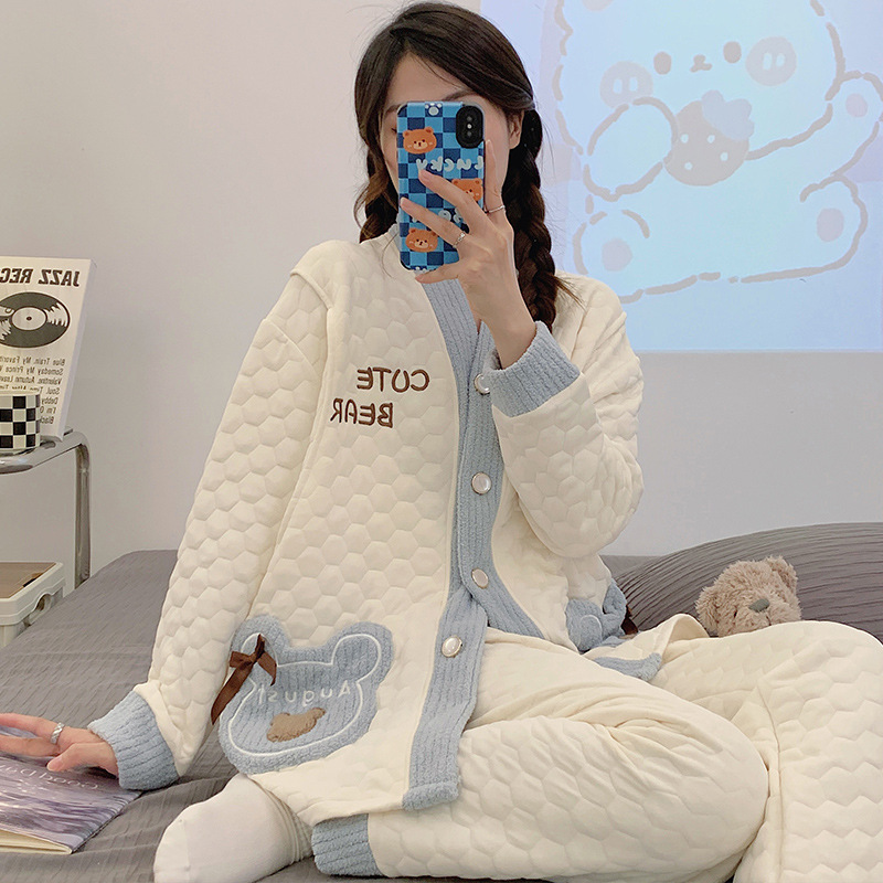 2024秋冬空気綿サンドイッチ厚さ11月子服妊婦パジャマ妊娠産婦授乳授乳家庭服11