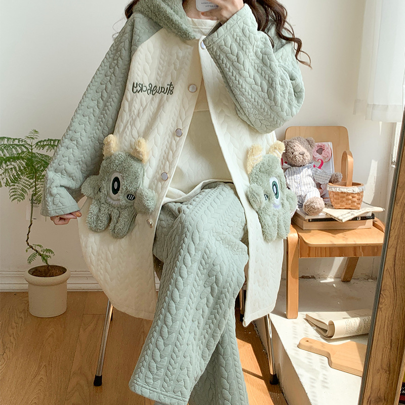 2024肥満妊婦三点セットパジャマ冬11空気綿産後月子服厚い授乳授乳服12