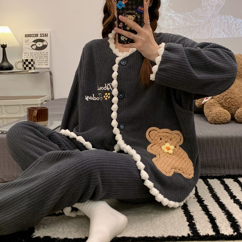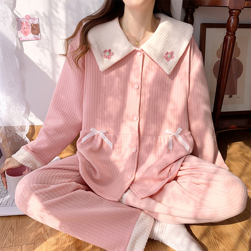 2024妊婦パジャマ秋冬コーラルフランネルパイル厚さ調節可能月子服授乳ホームウェアセット