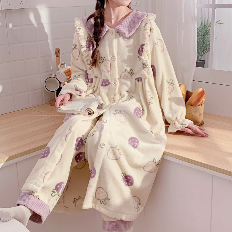 20234サンゴ絨毛月子服冬産後授乳服女性妊婦パジャマ秋冬金厚パイル大サイズ200斤