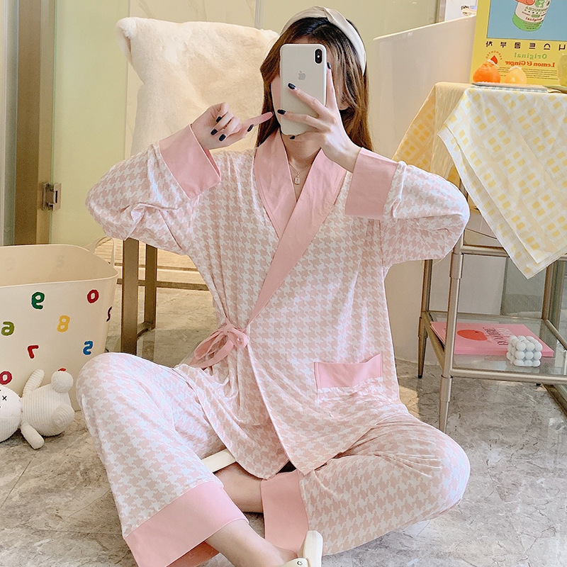 2023胸パッド付きモーデール月子服薄手妊婦パジャマ産婦産後授乳哺乳家庭服