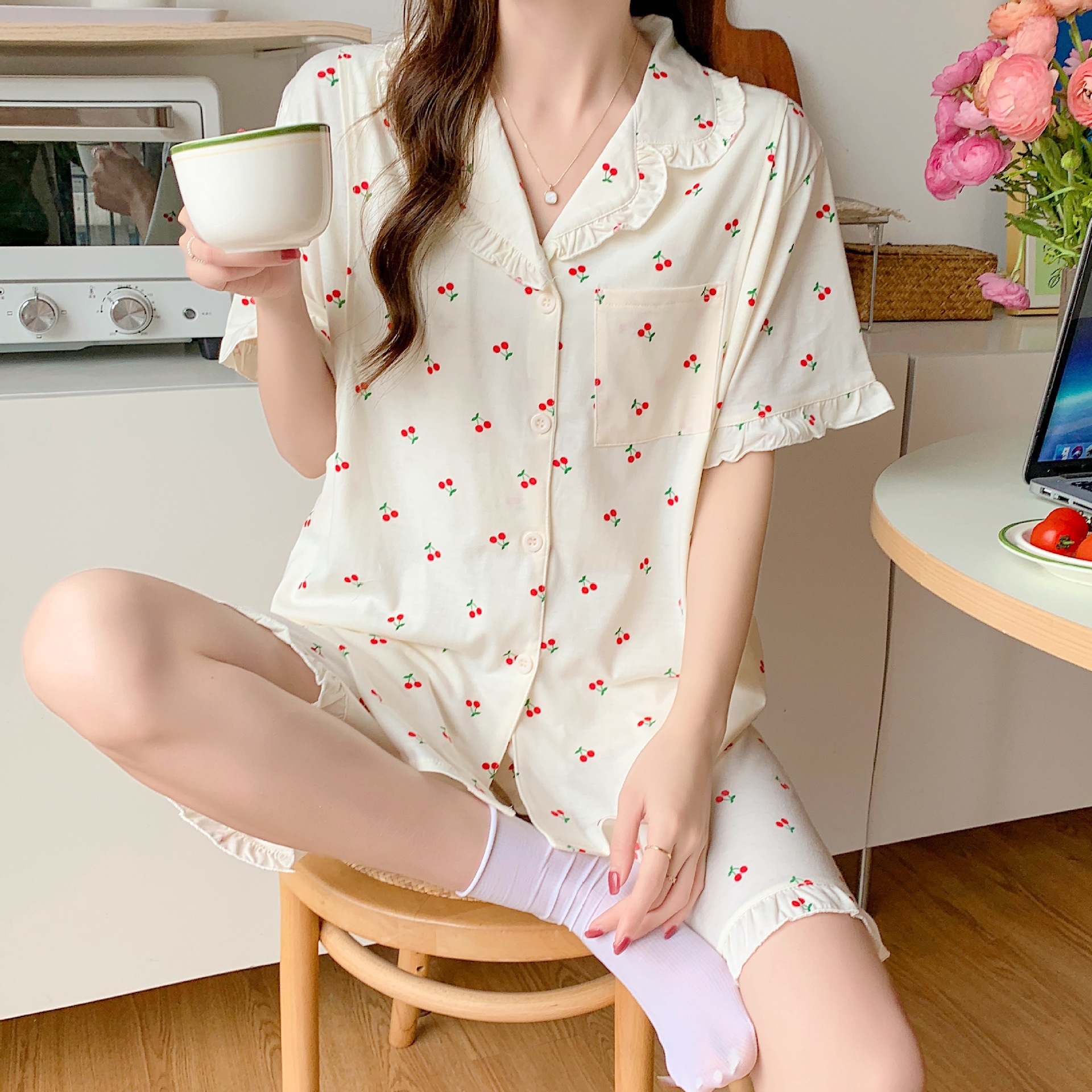 2023精練綿月子服夏8薄タイプ産後半袖大サイズ妊婦パジャマ月哺乳家庭服6
