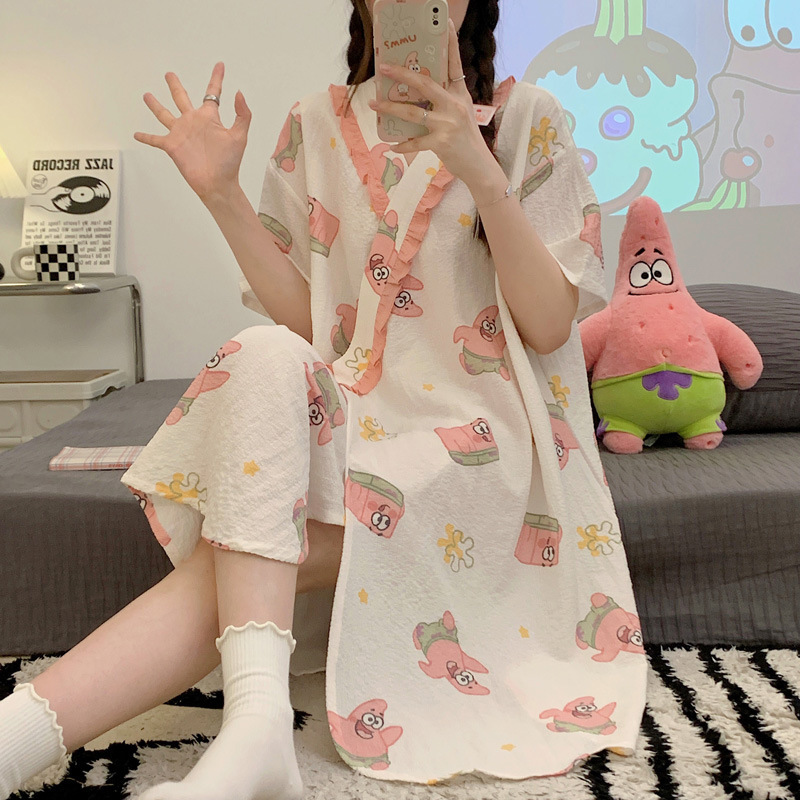 2024半袖授乳パジャマ夏の薄い純綿妊婦パジャマ女性出産予定月子出産後授乳ワンピース