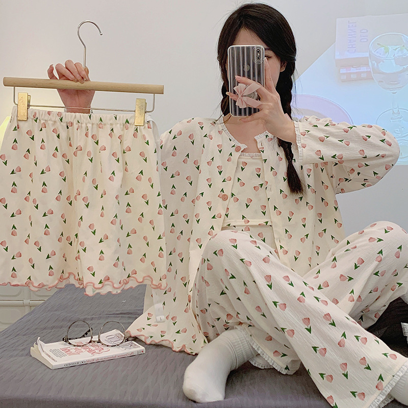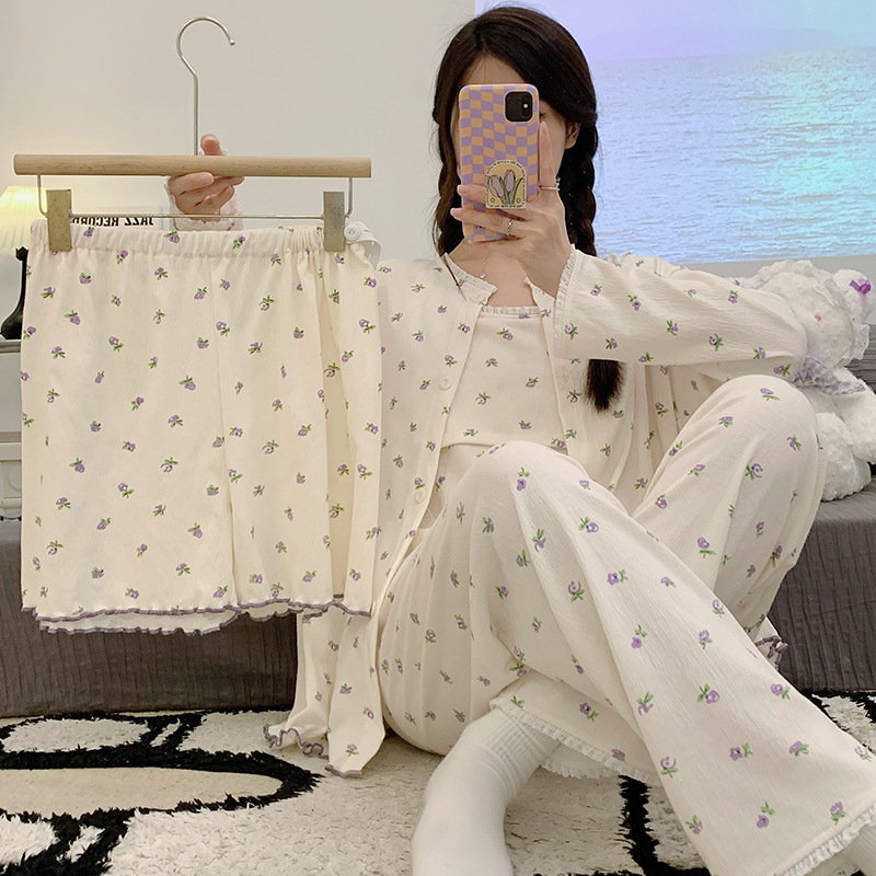 2024春の3精練綿の薄いタイプの4セットの月子服の妊婦の妊娠のパジャマの授乳服の家庭服の4