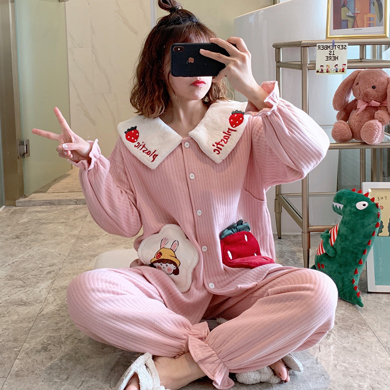 2024柔らかい月子服妊婦の産後授乳服秋冬の女性保温厚い産婦のパジャマ