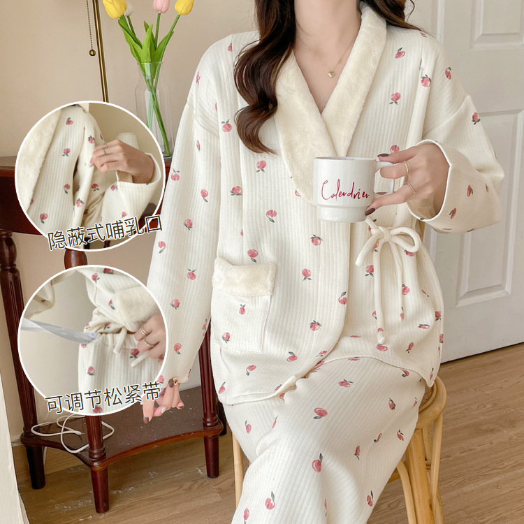 20224フワフワ月子服11月妊婦出産後授乳服秋冬女子厚手産婦パジャマセット12