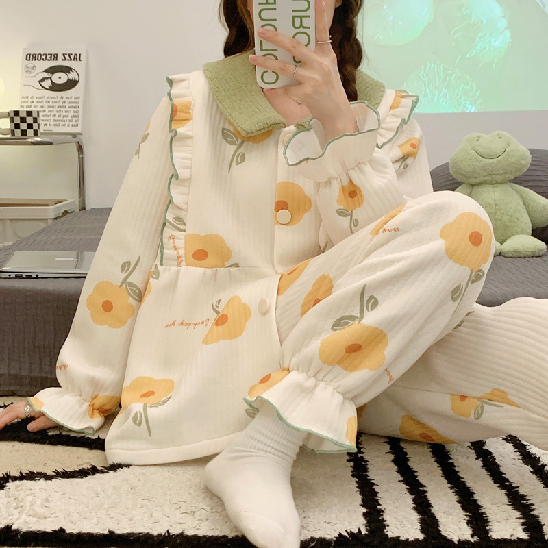 2023着物月子服秋冬産後授乳純綿サンドイッチ妊婦空気綿産婦家庭服パジャマ11