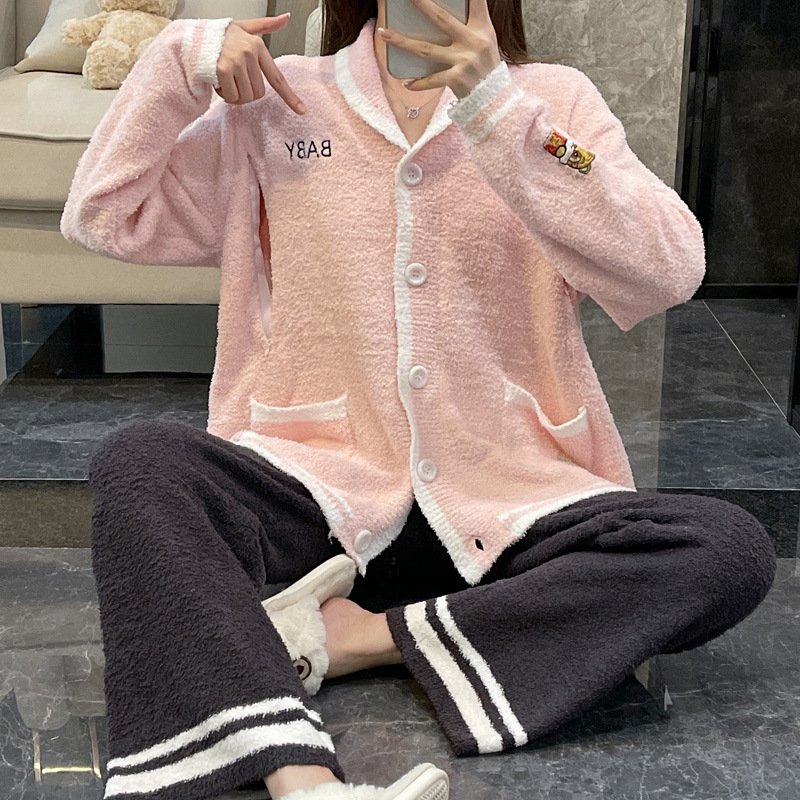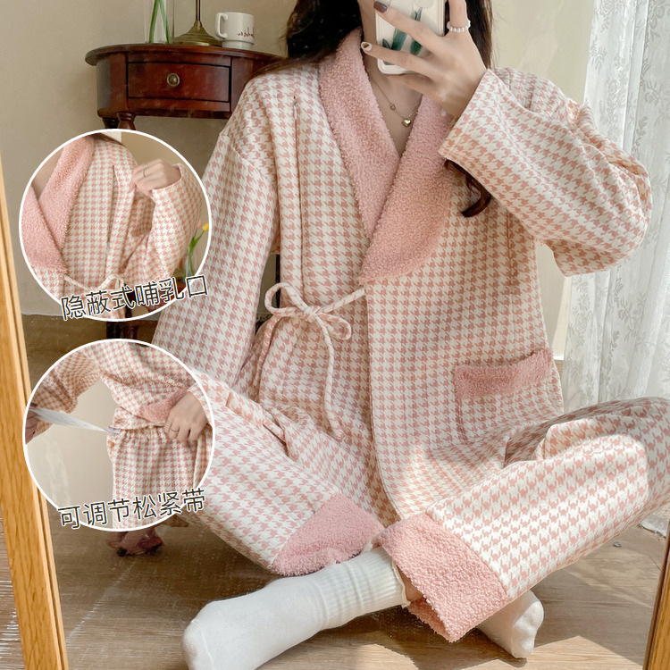 2024妊婦パジャマ女性冬フランネル妊娠期産後授乳米粒パイル授乳ベルベット厚手月子服