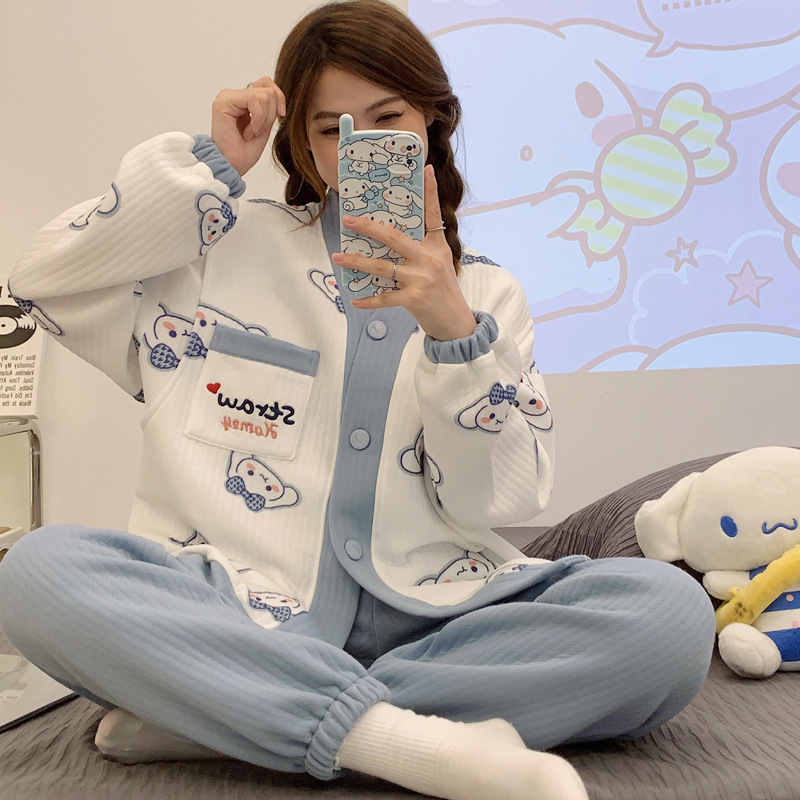 2024冬に保温米粒の月子服を厚くして産後授乳妊婦のパジャマ妊娠中の家庭服を授乳します。