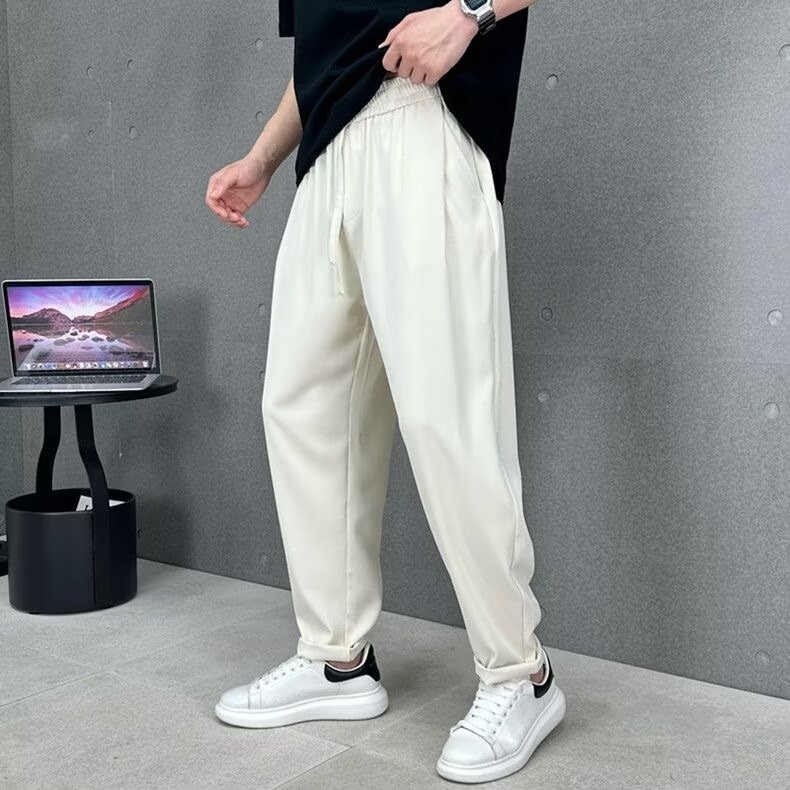 ゆったりとした足の広いズボンは、パーマをかけないでしわに強いです。2024男性の夏の純色がゆったりしています。