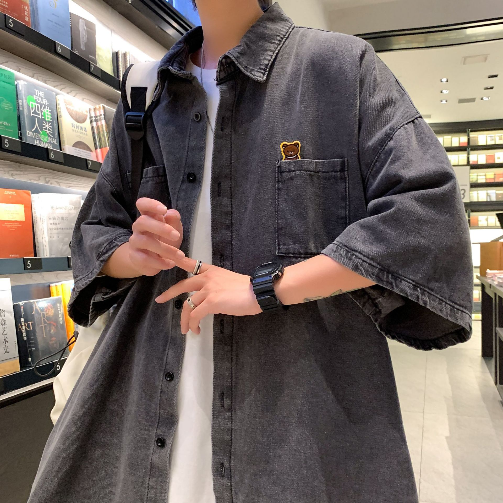 高街カウボーイ半袖シャツ男性夏の薄手韓国版トレンド復古百合ゆるいごろつきのシャツコート