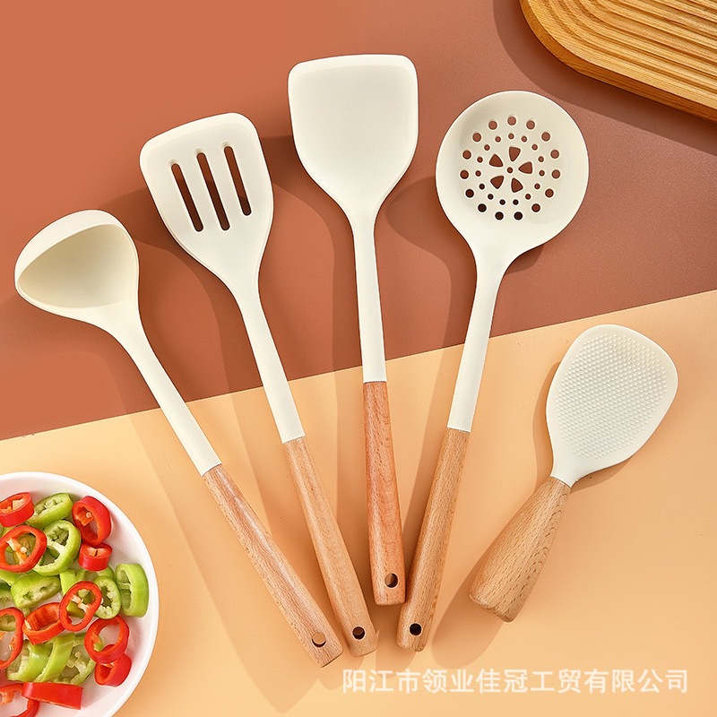 メーカー卸売ブナ材シリコーンクッキングスパチュラ 5 個セットアンチスクラッチスパチュラシリコーンクッキングスプーンスパチュラ調理用