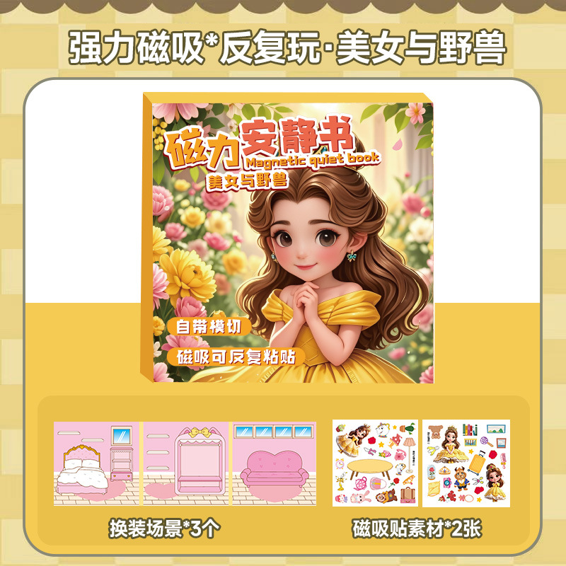 素晴らしいキュートな磁気静音ブックキャッスル、カット不要、磁気ステッカー、DIY手作り磁気ステッカー、女の子向けの大きなサイズ、キュートで楽しい