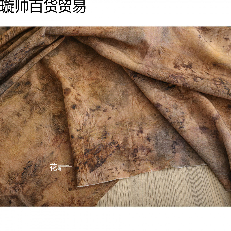 黄色と黒の斑点敦煌住寂風プリントポリエステル生地レトロ草木染めプリーツドレスデザイナー生地