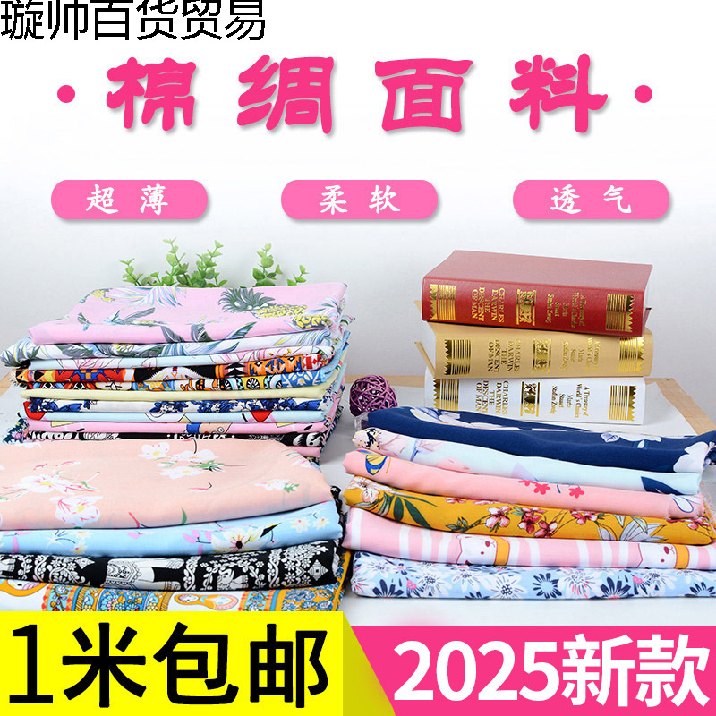 人工綿生地スーパーソフトコットンシルク生地夏の綿シルク漫画ベビーパジャマ服生地夏クールキルト花