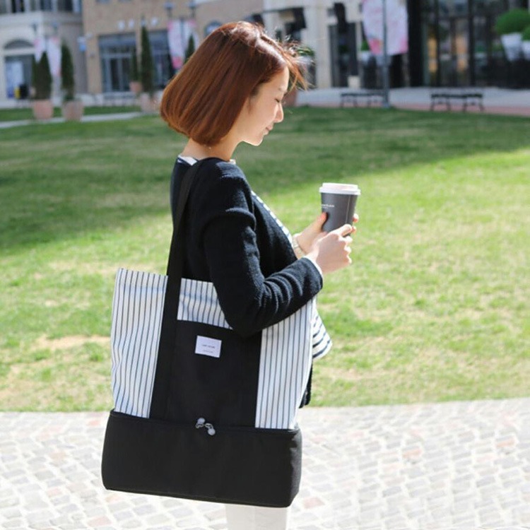 新しい韓国のストライプの弁当袋の二重保温の屋外のピクニックの収納袋の多機能の乾湿の分離の旅行カバン
