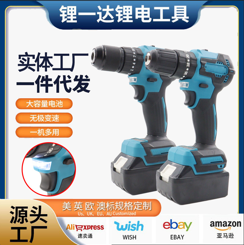 国境を越えた対外貿易13mmの懐中電灯ドリルの源は速度を速めてリチウム電気ドリルの大電力工業級家庭用電動工具に衝撃を与えた