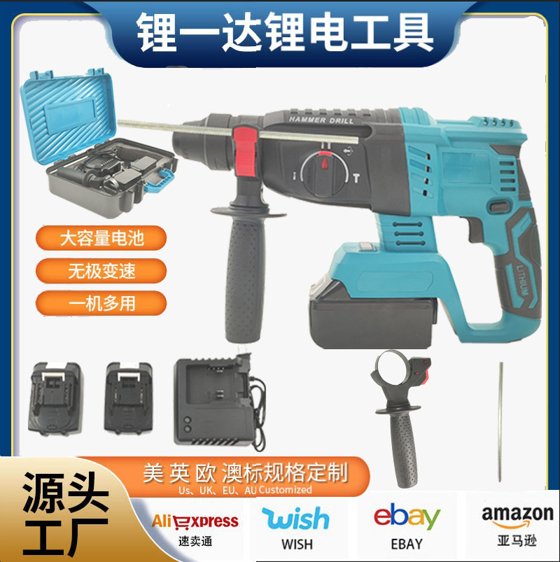 外国貿易クロスボーダー牧田モデルリチウム電気ハンマーハイパワー電動工具充電電池式ダブルパック電気ハンマーセット
