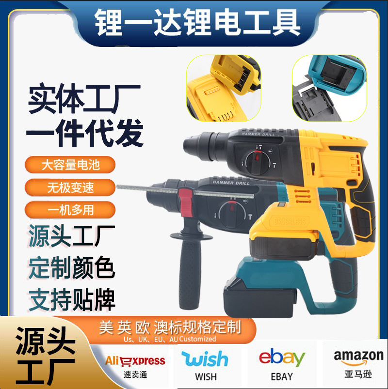 外国貿易クロスボーダー牧田モデルリチウム電気ハンマー充電電池式ハイパワー石材コンクリート類ハンマーセット