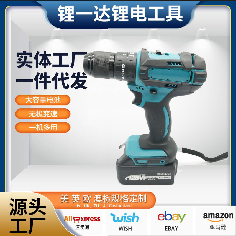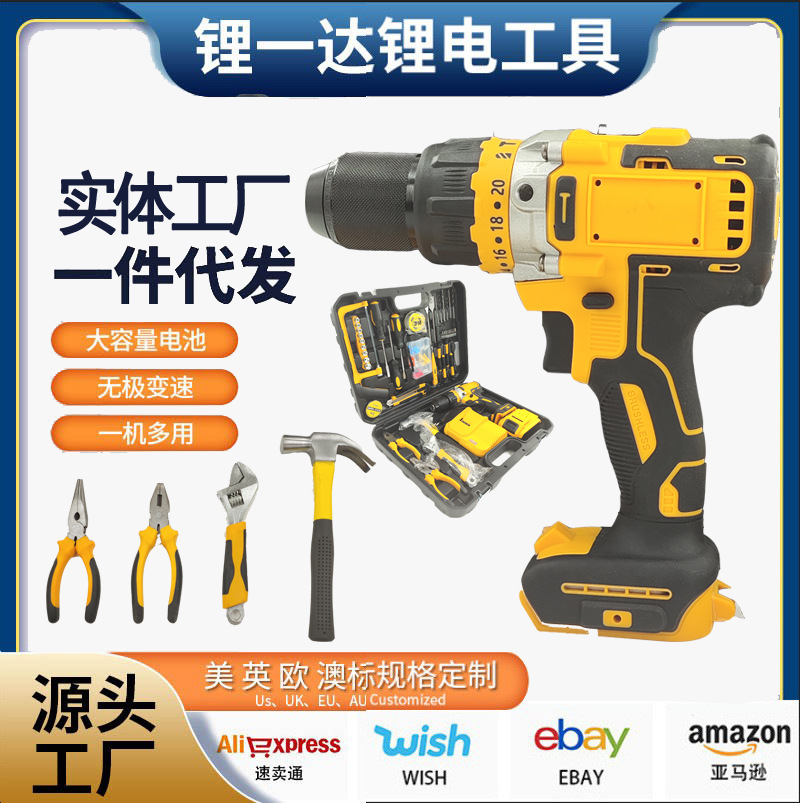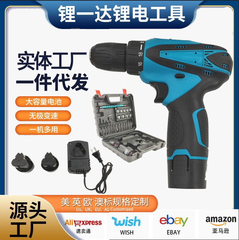 クロスボーダーリチウム電気ドリルツールボックス多機能充電手持ち式電気ドリル家庭用電動ドライバー五金セット