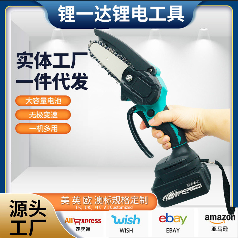 4インチチェーンソー小型充電式リチウムチェーンソー園林伐採電動鋸ミニリチウム電気チェーンソー