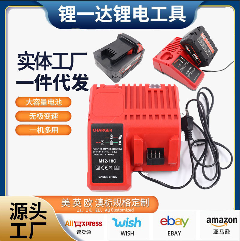 Milotech 充電器 18V リチウム電池急速充電 M12-18C リチウム電池充電器交換用クロスボーダーバッテリーパック