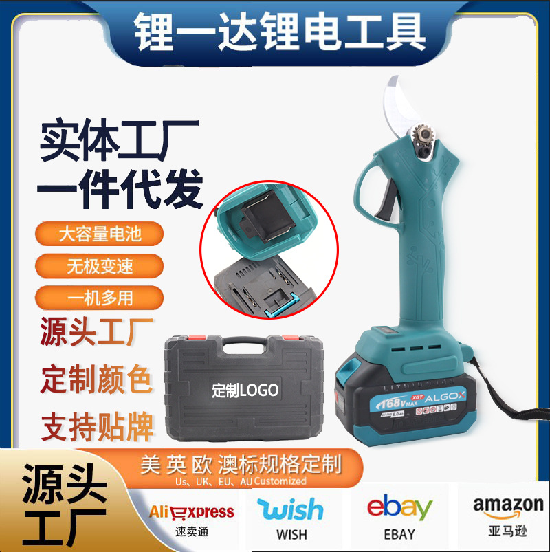園林リチウム電気剪定電気はさみクロスボーダー卸売り大容量修枝剪定園林環衛リチウム電気はさみセット